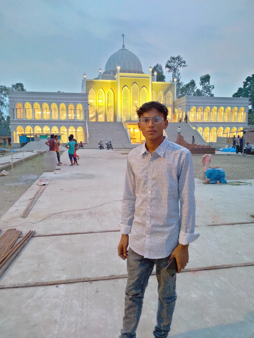 Shortly before I reached my uncle's house, I suddenly saw a mosque. The mosque is like the Taj Mahal, no matter how much I look at it, I just want to see it. There is no lack of beauty. The lights inside the mosque are shining brightly.
