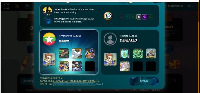 https://steemmonsters.com?p=battle&id=2f6e1b7be29eab128fb204a70c3697df0f26e4ec&ref=mmunited