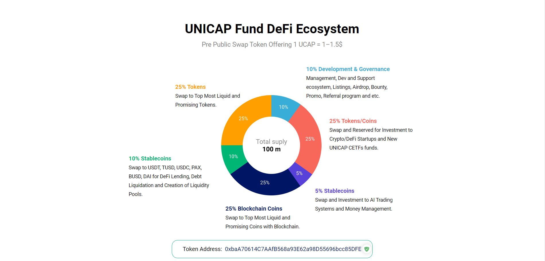 25% зарезервировано для инвестиций в крипто - / Дефи-стартапы и новые фонды CETF UNICAP.