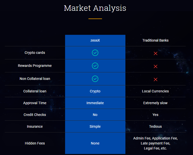 ZeosX is a decentralized platform aiming to revolutionize the traditional banking industry. Our cutting edge technological system is built based on a powerful finance ecosystem which consists of the futuristic banking components.