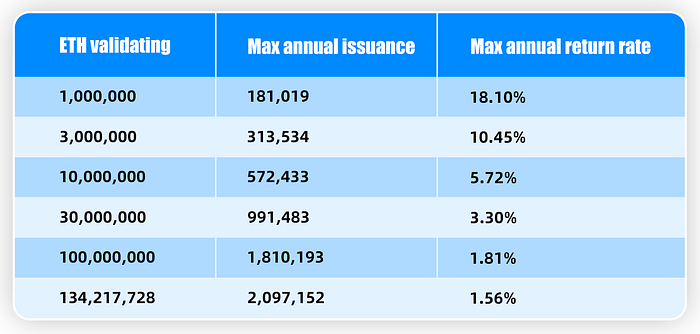 El rendimiento anualizado, 5%-20%, que se estima, y ??en realidad está determinado por la participación real de la red Eth2.0. Puede consultar la tabla estimada entre la cantidad de ETH en stake o participación y la recompensa otorgada por ETH official.