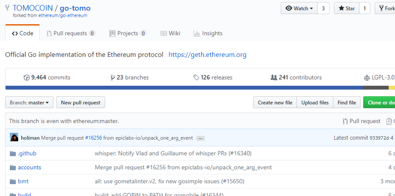 EDIT 27/03/2018 TomoChain confirmed that their source code is not open, the below is therefor only a representation of their public code and not their development work