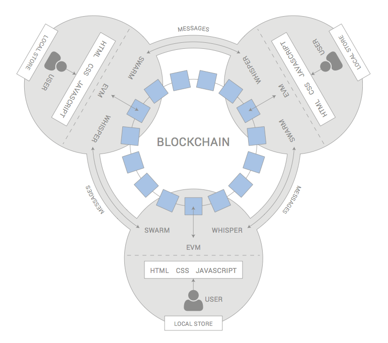 Here’ an illustration of what web 3.0 coin the “holy trinity” (Ethereum, Whisper and Swarm) for dapp development: