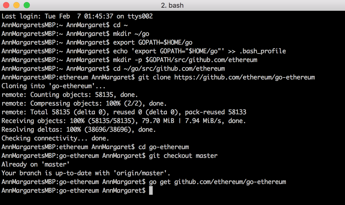 - cd into ethereum and clone go-ethereum from GitHub