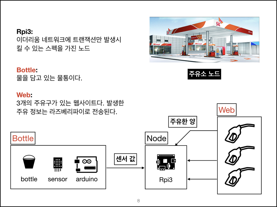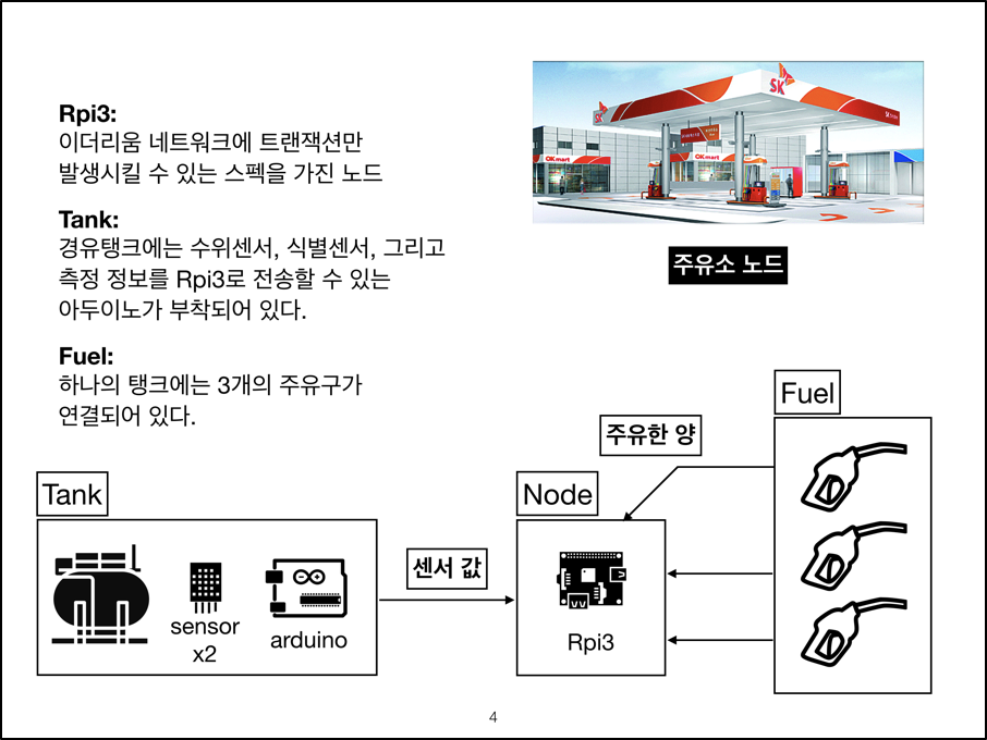 시스템의 요지는 주유소 내의 특정 데이터를 스마트 컨트랙트에 지속적으로 반영하여 불법적인 행위가 발생했을 때 바로 확인할 수 있으며 해당 행위가 영구적으로 블록체인에 기록되기 때문에 2차 피해를 예방하고 적절한 조치를 취할 수 있는 것이다.