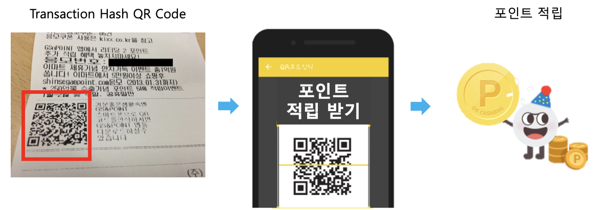 사용자들이 주유를 받으면 영수증에 사용자가 주유한 내용이 반영되어 있는 트랜잭션의 해시가 QR코드가 적혀있다.