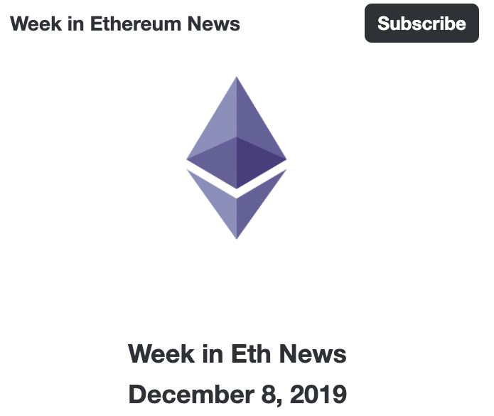 Week in Ethereum News for December 8, 2019evanvanness (54)in #ethereum • 6 years ago (edited)The latest Week in Ethereum News is out! #web3 #crypto #weekinethereum #eth