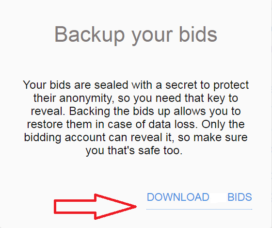 - PLEASE PLEASE PLEASE PAY ATTENTION! Do not forget to save the .json file after you have bid. This file allows you to reveal your bid later in the process. Save to your computer as you will upload this file later when it is time to reveal your bid.