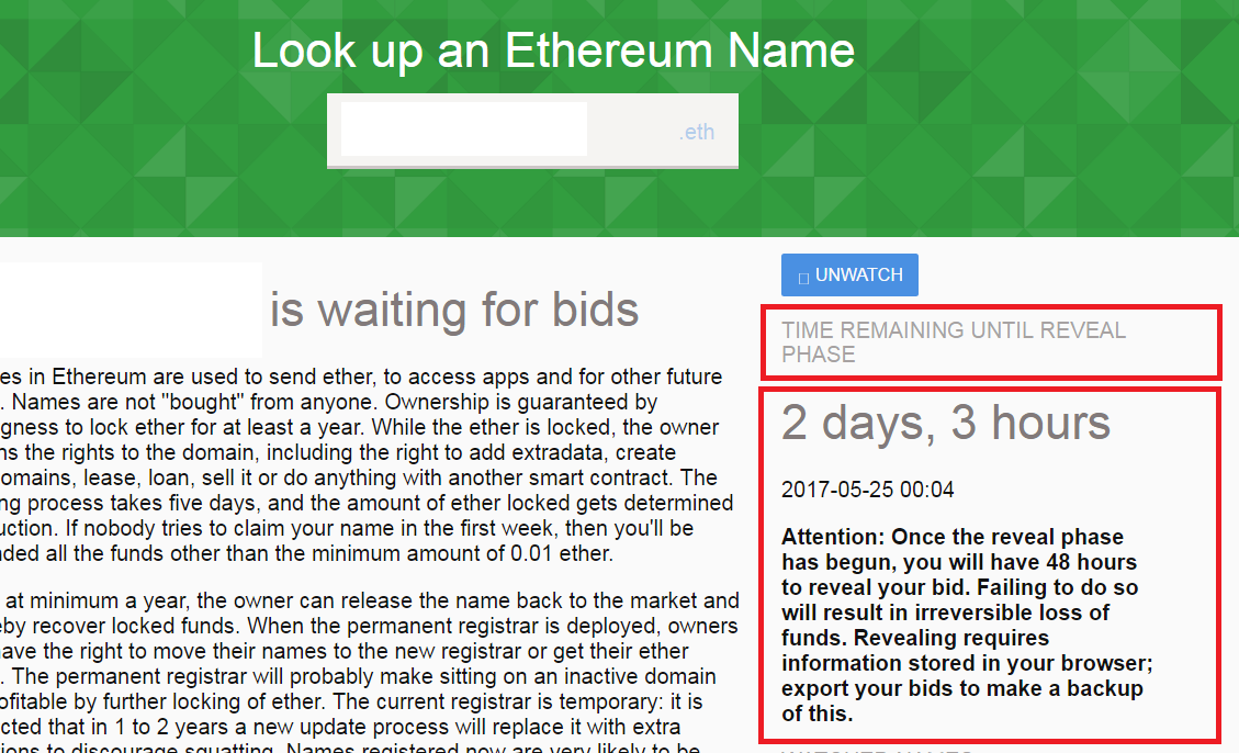 - The only way I know to check when to see the time for you to reveal your bid is to upload the .json file and look to the right of the .eth input bar to see the timer.