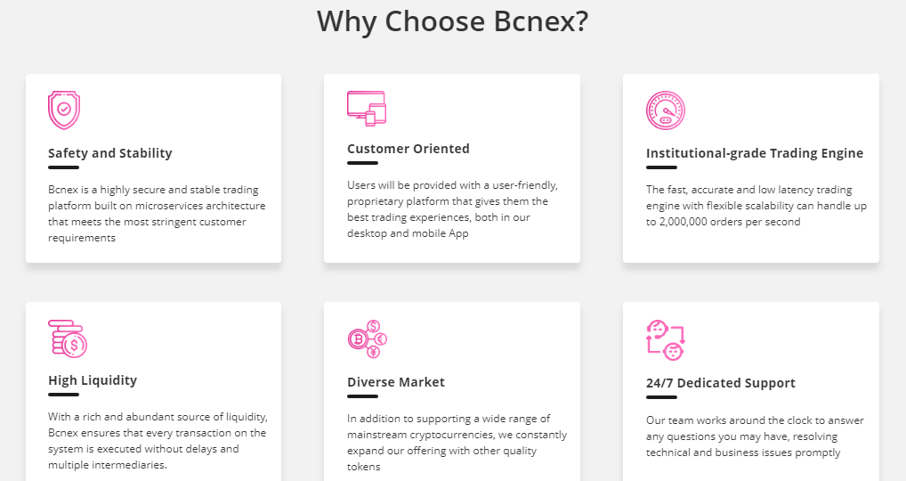 Transactions are very swift and fast made possible with the inclusion of thousands of bots, already deployed in the ecosystem. Deliveries in transactions or trading are done within seconds with its flexible scalability that can handle up to 2,000,000 orders per seconds made possible with the micro services architecture already in place so as to give users the best experience. Bcnex Order Matching System (BCOMS) is a feature also that helps with the order so as to prevent the ecosystem from overloading and clogging of orders. With its stability, users have no fear of any sort as every API function is load tested for speed and reliability. Its customer services are also top notched as every compliant or issues are considered and given proper attention for possible solutions within seconds. The aim is to give users the best experience.