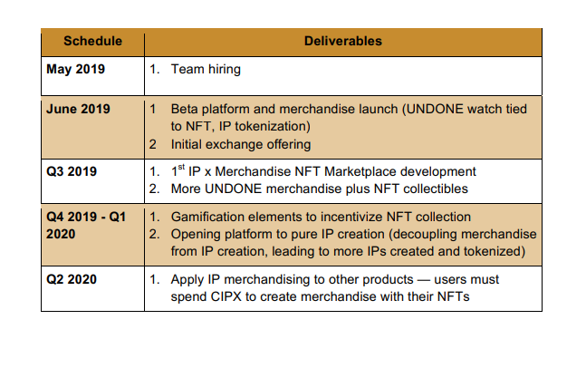 • Beta platform and merchandise launch (Undone watch tied to NFT, IP tokenization)