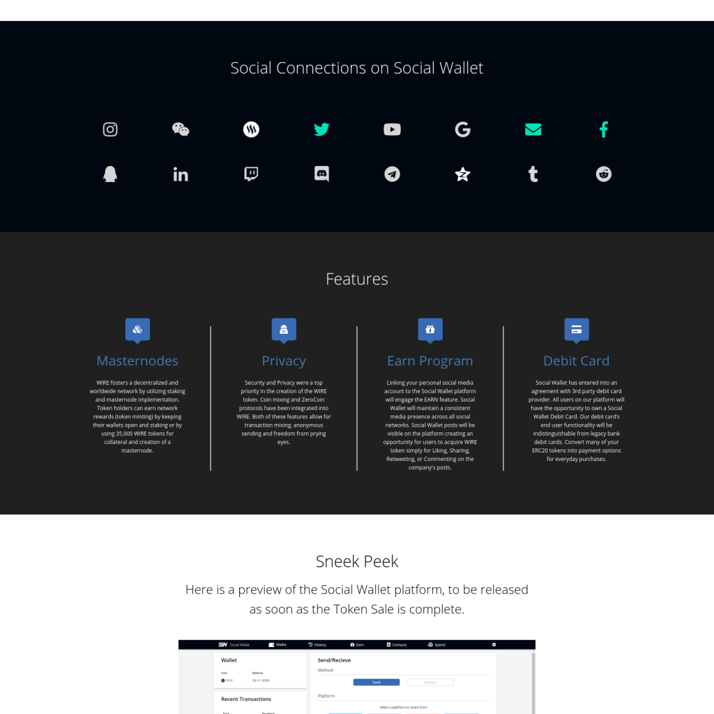 Bu sistemi ve WIRE tokeni oluştururken düşülen şeylerin başında gelen bir özellikte gizlilik ve güvenlik olarak planlanmış. Sisteme tanımlanan token karıştırma özelliği ve zero knowledge protokolleri WIRE tokenlerine entegre edilmiş durumdadır. Bu entegre edilen iki özellik sayesinde sistem üzerindeki kullanıcılar işlemlerini anonim olarak yapabilecektir. Bu özellikler sayesinde yapılan işlemlerin bağlantıları karıştırılacak ve kullanıcıların izlenme ihtimali sıfıra indirilecektir.Sistemdeki Kazanç Programı