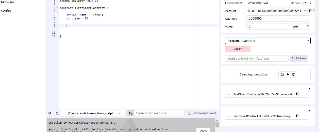 We have created a new variable 'age' and you will be able to see a new contract at the right-hand side of the window after you hit 'Deploy'.