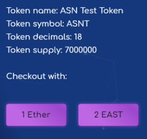 Ethereum Asset Split Token (EAST) is a low total supply (150,000) ERC-20 token. It is used as primary payment method for ASN services. A further usage of EAST is the aquisation of profit-shares from our platform.