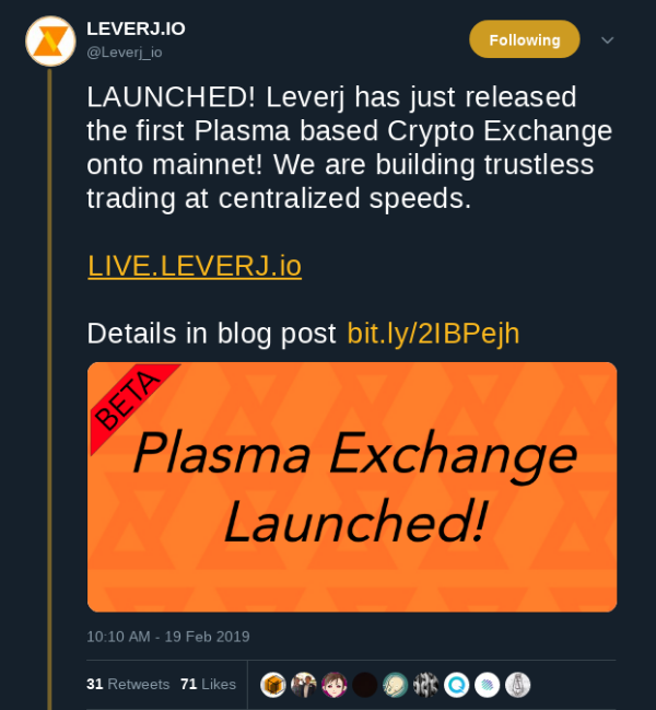 Leverj (Non-Custodial Plasma Side-chain DEX) Just Launched, LIVE on Ethereum mainnet.
