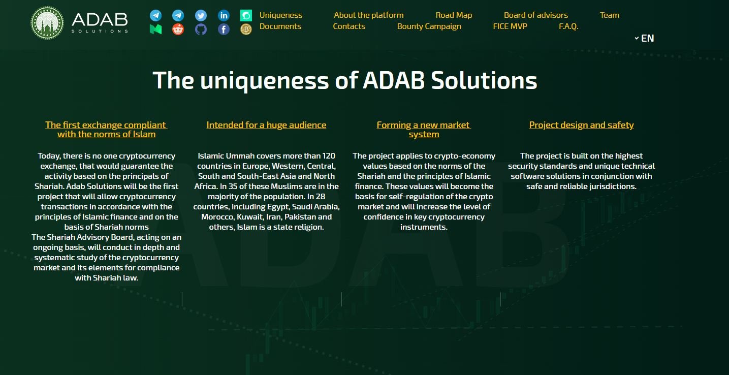 Adab is a way of life in Islam which the founders of the project consider not only natural in everyday life but an obligatory foundation of business relations. It is a platform not only for Muslims and Islamic blockchain startups; it is an open market place for anyone who wants to build an honest technology business. Adab has solved the problem of halal cryptocurrency transactions providing access to cryptocurrency market for Muslims. The principles and values are based on the norms of Sharia and Islamic financial principles. An Adab solution integrates the Islamic management model into the business management and business risk management system as an integral part of the company’s management system. It will completely exclude the possibility of speculative transactions margin, trading and operations that do not correspond to Sharia thereby excluding Gharar, Maisir and Ribu from the work of the exchange. It has not only solved the problem of halal cryptocurrency transactions, it has also solved the problem of excessive risks in cryptocurrency systems and the problem of developing Islamic crypto exchange infrastructure. Adab solutions also undertakes to deduct 5% of its net income for each quarter and 2.5 of annual net profit for charitable purposes which will be for the basis for the charitable foundation of Adab putting the sacred pillars of Islam- Zakat into practice. Why this project is beneficial is because it operates on the principles of Islamic finance and the community that regulates the development of Islamic crypto-economics. It’s a win-win for those who are Islam. The system is transparent with safe jurisdiction which makes buying and selling of cryptocurrencies for fiat money in the exchange is possible. There is no risk involve in it ass rewards are given. Users also have the ability to enter and withdraw funds through banks. There is also a guarantee in the absence of excess Gharar in transactions (al-gharar al-kasir). It’s a totally reliable, honest and transparent platform due to the culture, ethics and principles of the Sharia.
