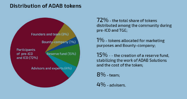 Soft cap = $2 500 000. 480 000 000 tokens will be issued 1 ADAB = $0.1