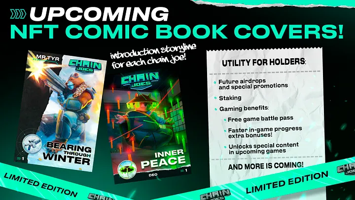 In the ever-expanding universe of Chain Joes, an exciting new adventure is coming: the launch of exclusive NFT comic book covers. Each of these six covers is dedicated to Chain Joe Hero, giving fans a unique way to delve into their introductory story.
