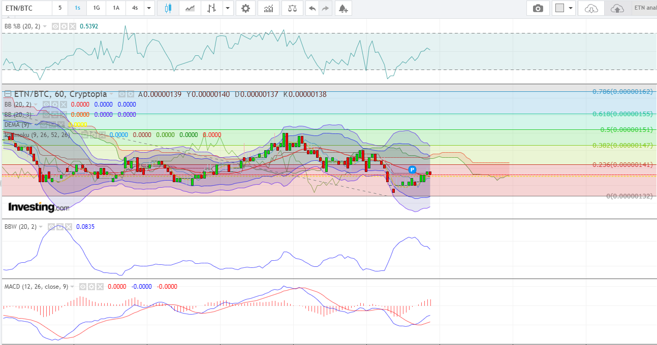 Unfortunately BTC dominance in the market is %48,43. So all the alts will diminish unless the ratio is %40. of course ETN is one of them. Coin is resisting more than expected but pressure is so much. so be patient about the sales. a new lowest value is determined according to FIBO which is 132 sat. first resistance (unlikely to reach) 141, other step is 147.