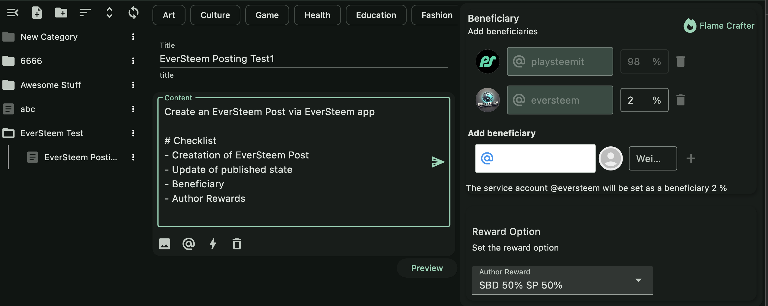 - Creatation of EverSteem Post