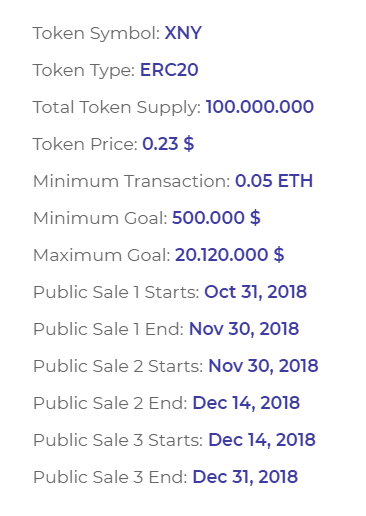 XNY TOKEN INFORMATION AND SALE DETAILS