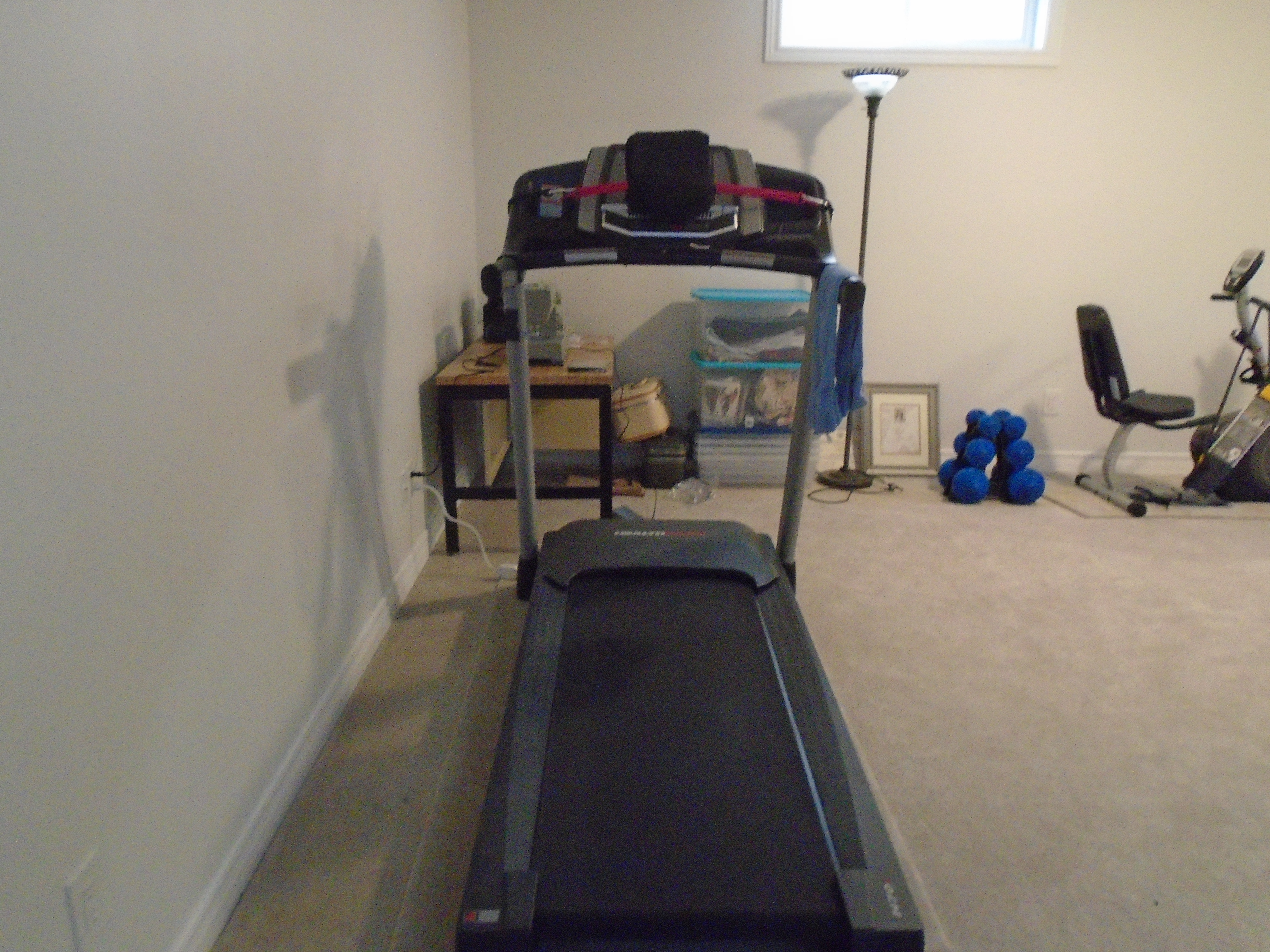 After being spoiled with pleasant weather and long walks outdoors Mother Nature has decided to play with the thermostat again. It is just too hot to walk outside. Rather than miss out on my exercise I turned to my trusty treadmill. Strapped to the front of it is a mini portable dvd player. I pop in a movie, set the pace and away I go. 90 minutes and four miles later I am relaxing with a cool glass of water.