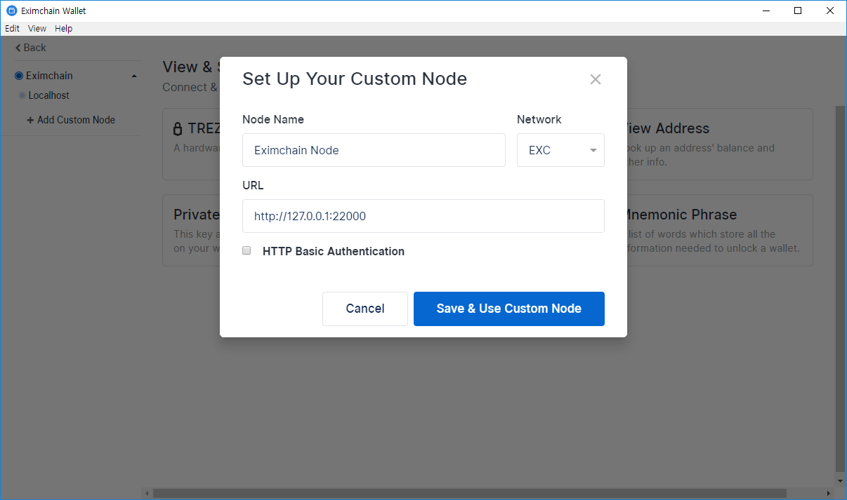스스로 Eximnode를 작동시켜 지갑을 연결 할 수도 있습니다.