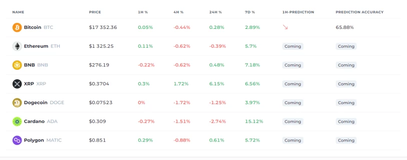 For now, the product only predicts the price of Bitcoin, but other altcoins will be added soon.