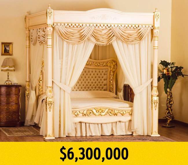 - This luxurious bed by Stuart Hughes costs a whopping $6,3 million. Its frame is made from the best types of ash, chestnut, and cherry.