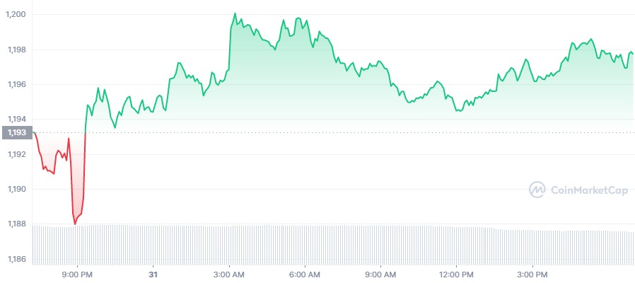 Ethereum price today is $1,197.90 USD with a 24-hour trading volume