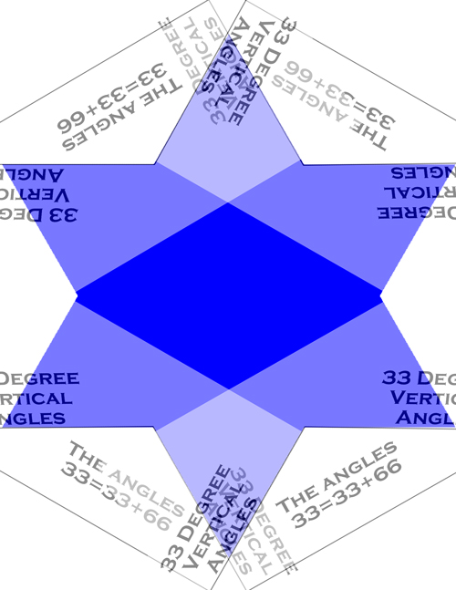 (Putting a Hex on you) Side note, which hexagram comes to mind? Its has 33 degrees vertical angles? Also, Their is a country with this star on their flag... Moving on...