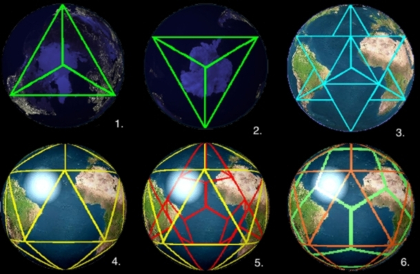 Platonic Solids, Geometric symbols, Fractal Images is the key.