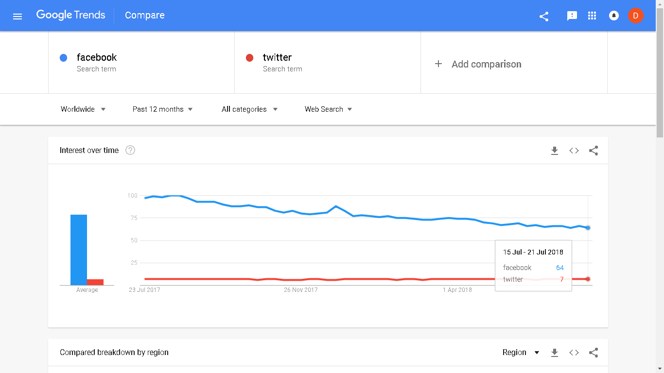 World wide which is using more. you can see strategy line in the below. Numbers represent search interest relative to the highest point on the chart for the given region and time. A value of 100 is the peak popularity for the term. A value of 50 means that the term is half as popular. A score of 0 means that there was not enough data for this term.
