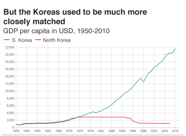 People in North Korea face food shortage and that is why South Korean usually spend longer life.