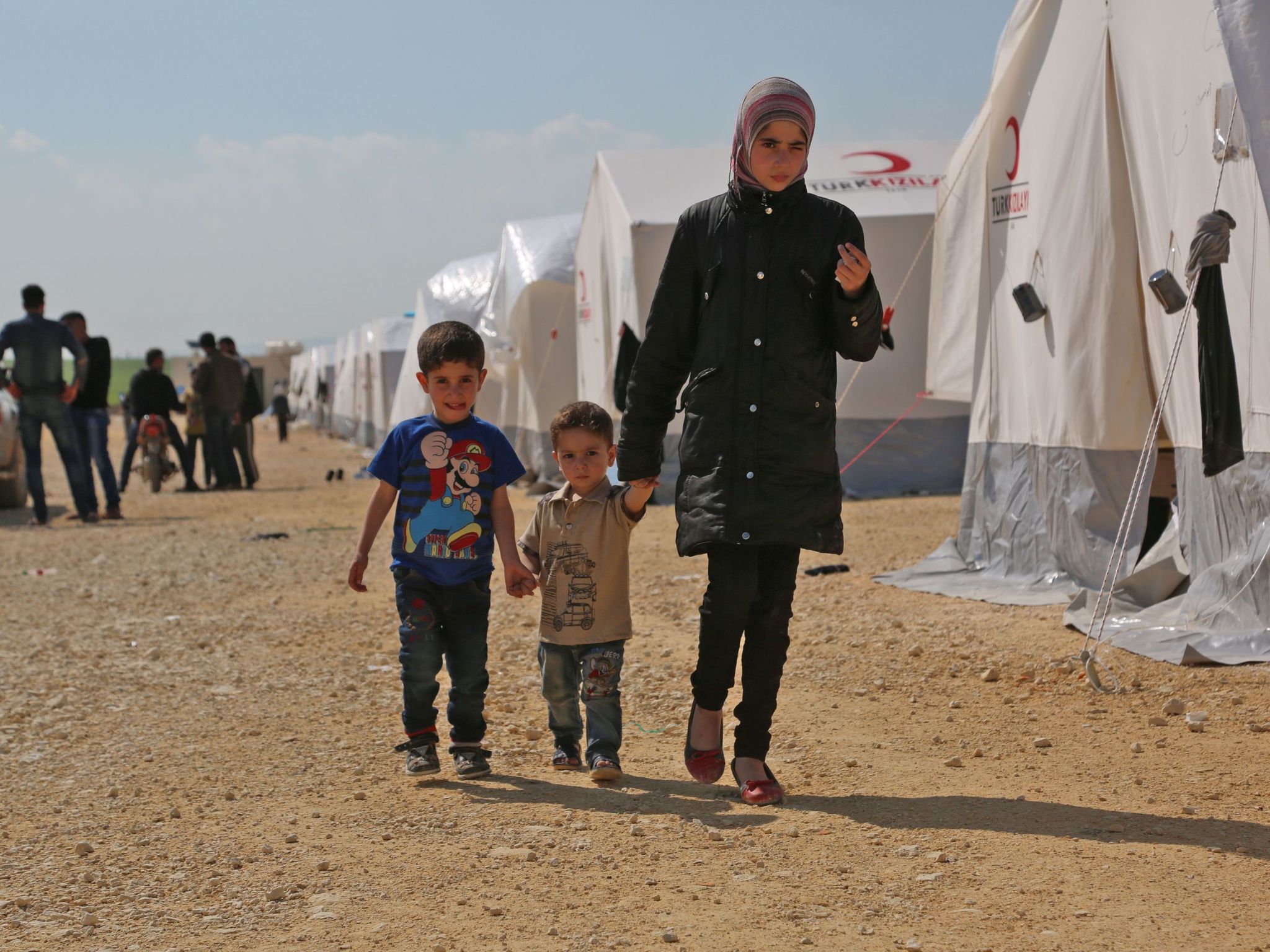 Children at a camp for displaced Syrians from Douma