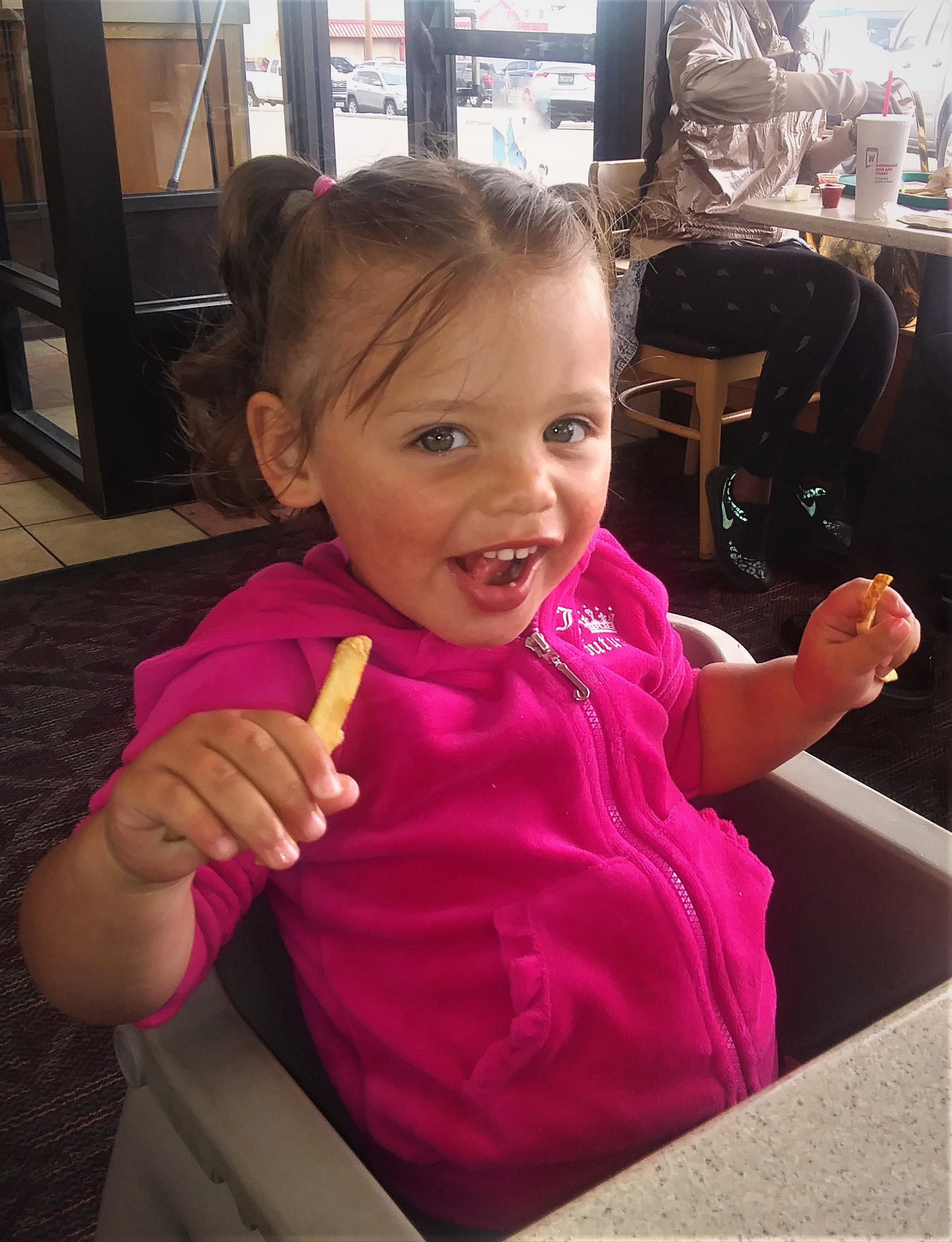 She is highly energetic and gets into everything. We are constantly on the watch to see what she's up to; Hence the phrase "Terrible Twos"