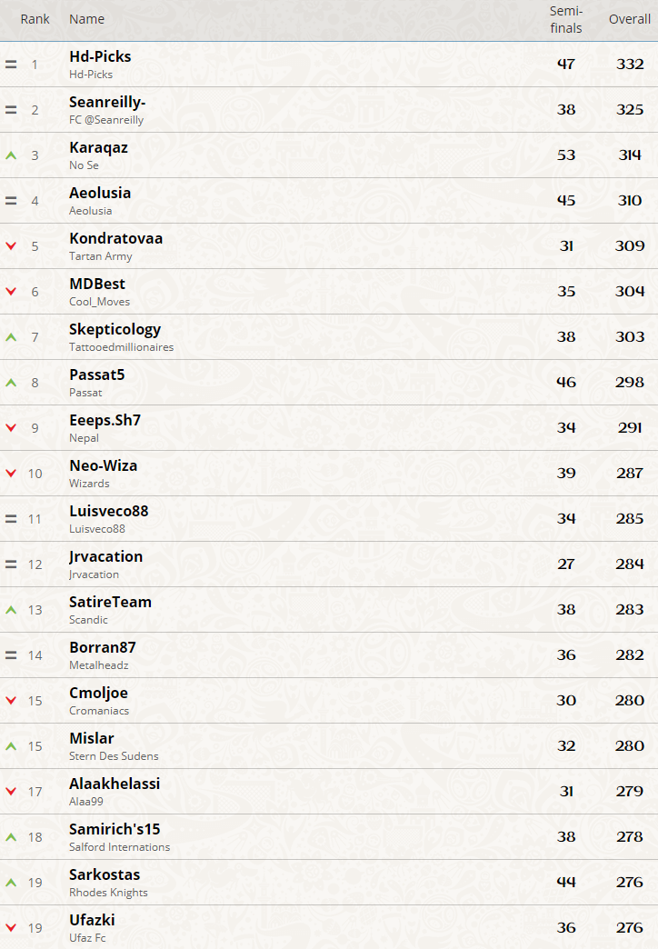 This is my first time playing Fantasy League and I'm leading 😛 Maybe my lead would be even bigger, but because I didn't read the rules on time, I didn't know I can substitute players in group stage. After I saw I'm in top positions after group stage I went to read the rules.