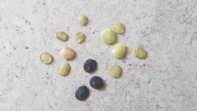 #5 "little-bean" - These flat pods were averaging 4 to 9 inches long and have some flat seeds inside of different colors.