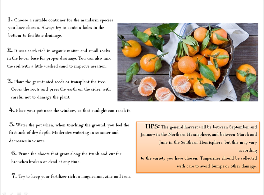With tangerines in addition to obtaining large sources of vitamin, we can also prepare fabulous dishes, I have personally used tangerine for salads and to prepare baked chicken, this is delicious !! Apart from the segments, you can take advantage of the peel, the juice and even the leaves in infusion, you can grate the peel (of organic mandarin) on a salad. You can leave it in oil or vinegar to aromatize them. The juice can be used as a dressing for salads, in gelatin (mixed with agar-agar) and in the preparation of sauces. To marinate, both the skin and the juice are used (of mandarins that are still green, more acidic).