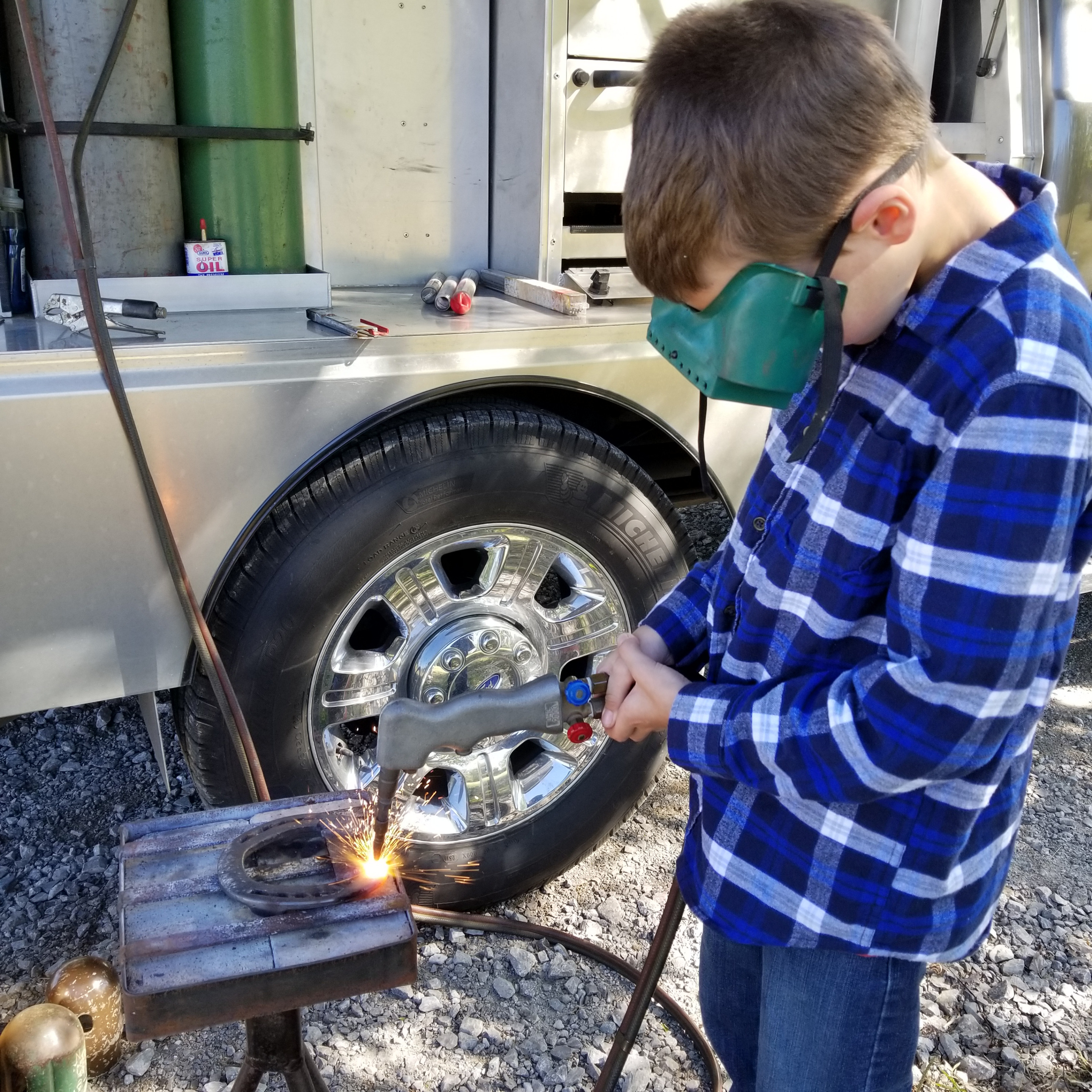My oldest son, Will has been showing some interest in forging and welding lately, so I have started exposing him to some basics.