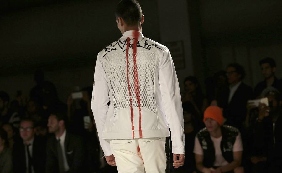 에릭 가너가 경찰에 총을 맞아 숨지기 전 했던 말 ‘I can’t breathe’를 가져와 의상에 프린팅한 커비 장 레이몬드