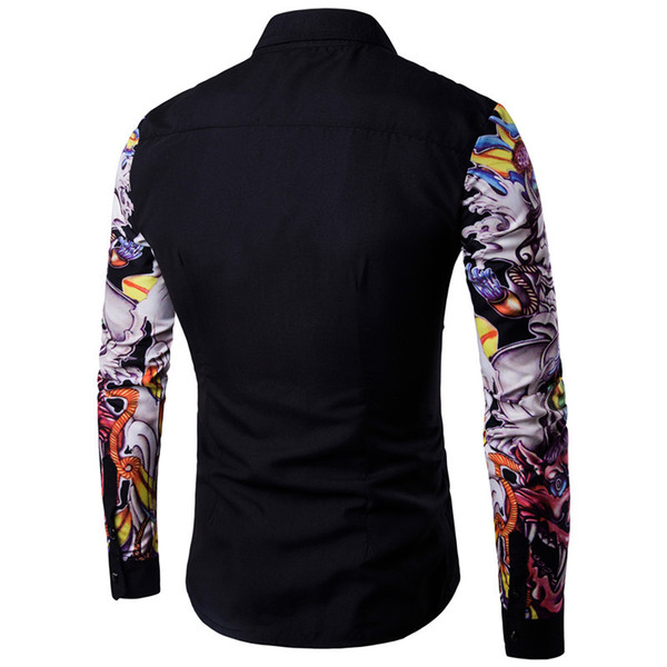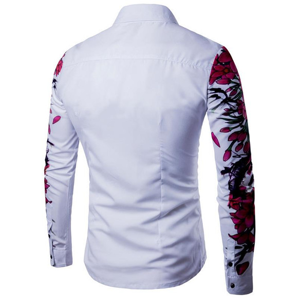 2018 New Arrival Man Shirt Pattern Design Long Sleeve Floral Flowers Print Slim Fit man Casual Shirt Fashion