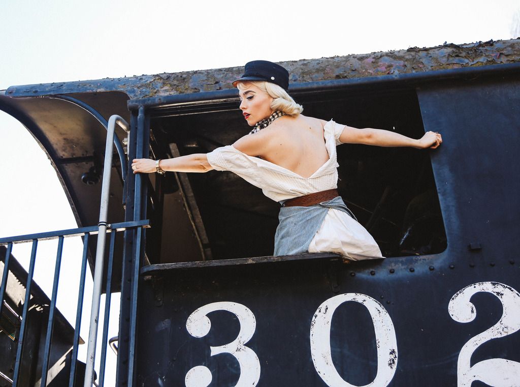 She picked the location, this train museum in Griffith Park in Los Angeles. It was mainly for kids, but we had a good time wandering around and climbing in some old trains. Addie put her outfit together to go with the theme of the museum and she did a great job. We want to go back and do a whole series around these trains, so stay tuned for that!