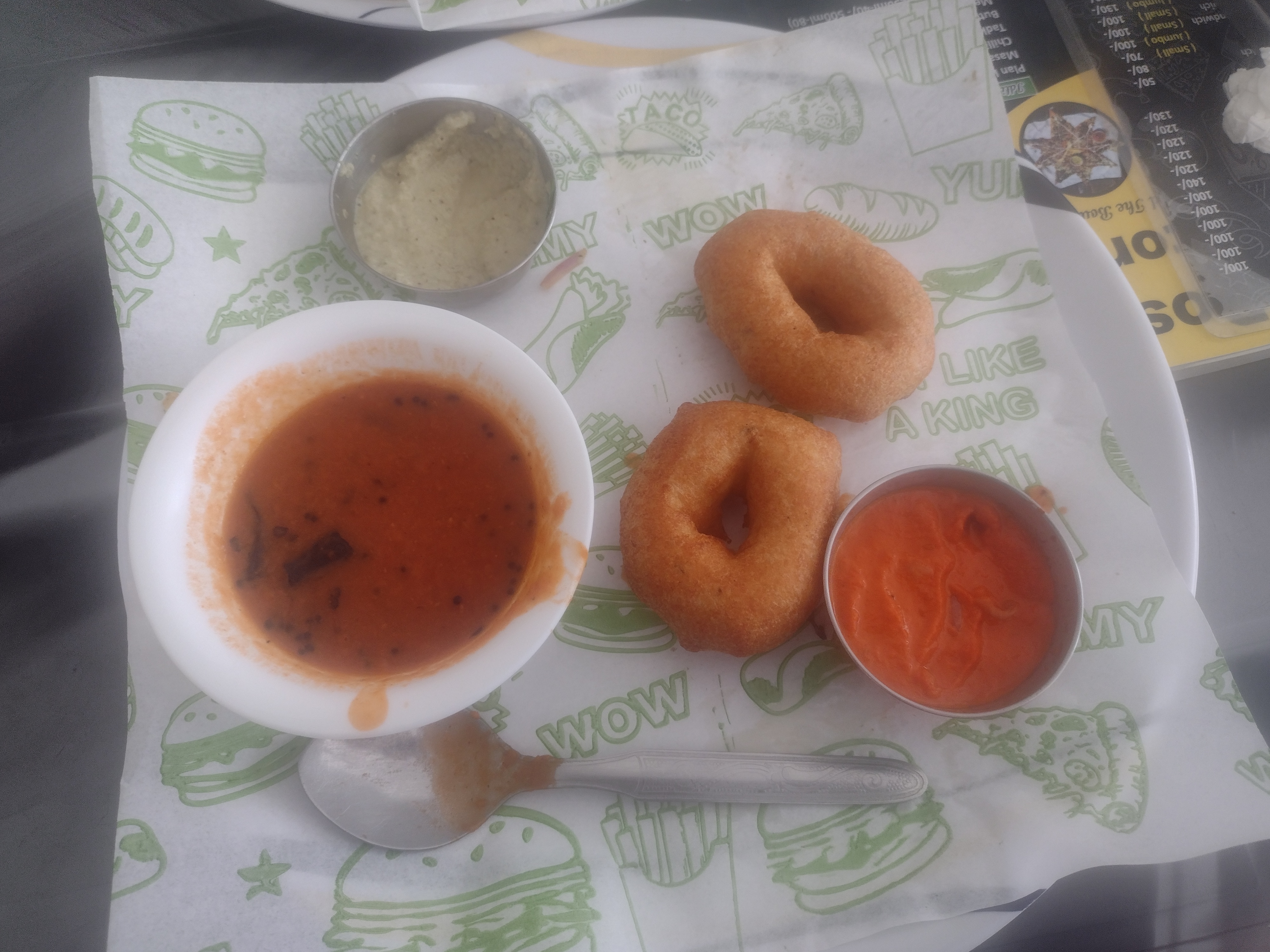 This is bade with red sose and coconut chatne.