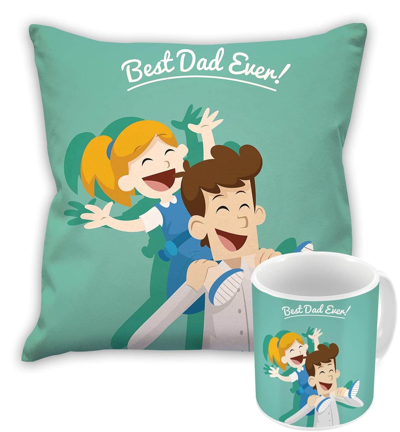 5. Best Dad Ever Customize Gift Combo Cushion Cover with Filler & Ceramic Mug