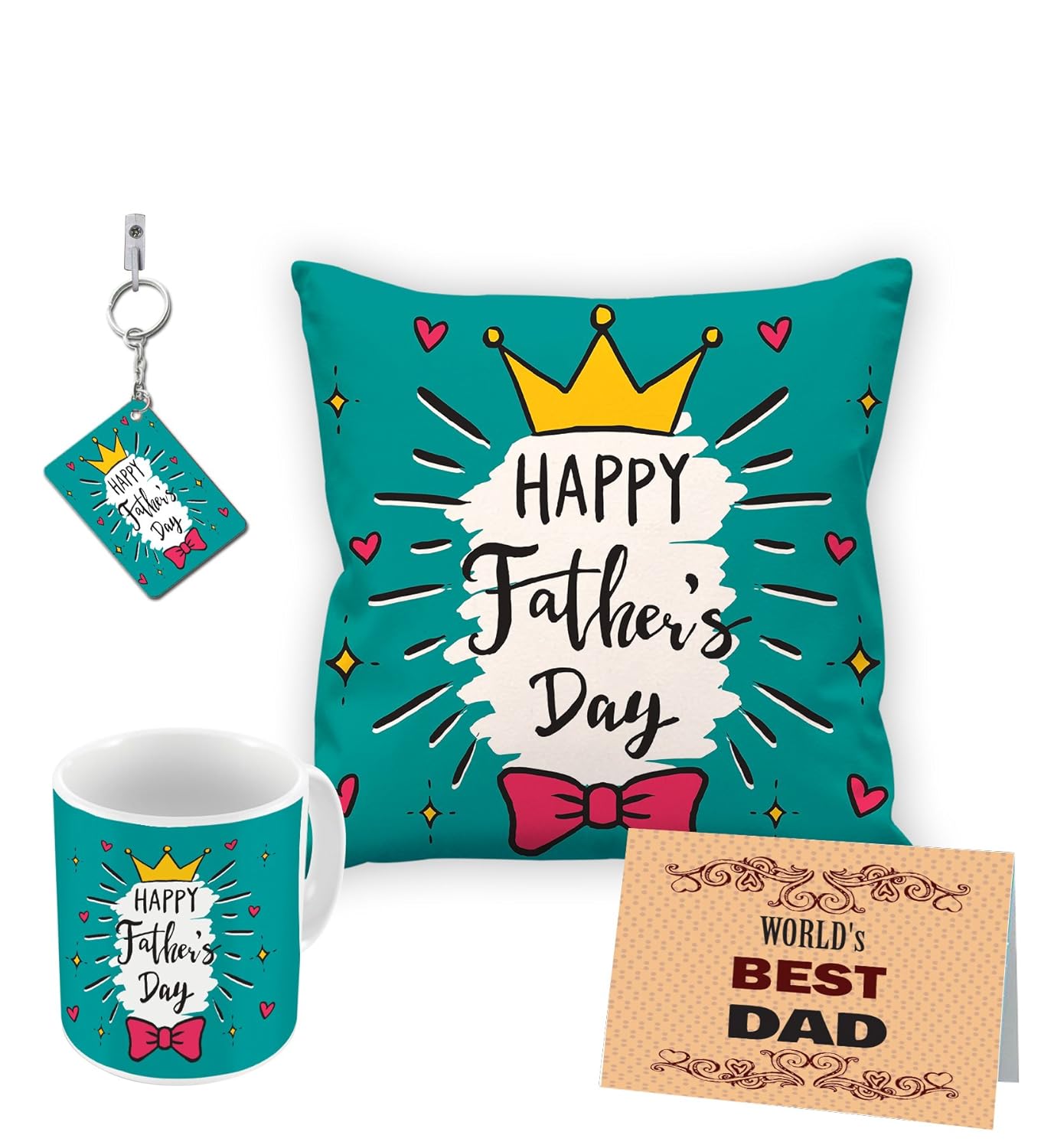 3. Happy Father’s Day Printed Cushion Cover with Filler, Mug, Key Ring and Greeting Card