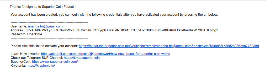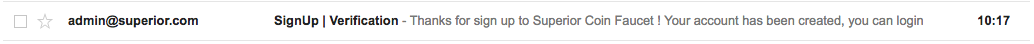 Go to your email account and verify the mail from SuperiorCoin faucet. Follow the mail and click on the link to active your Faucet account.