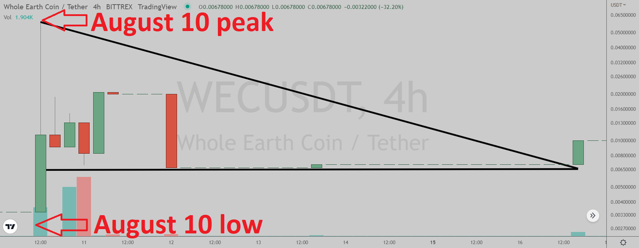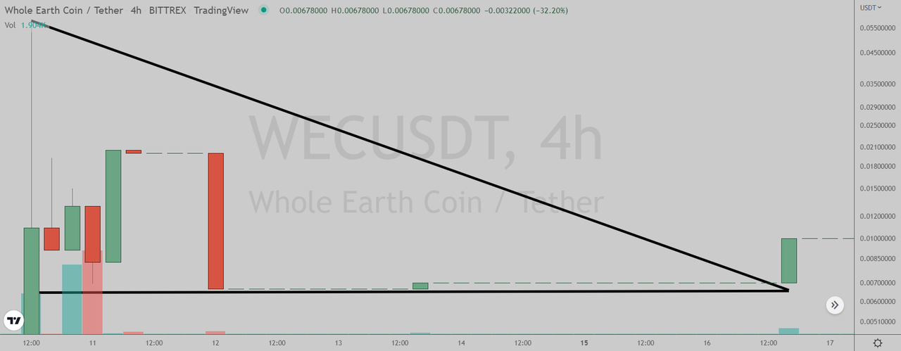 Whole Earth Coin (Bittrex: WECUSDT) four-hour chart by Tradingview.