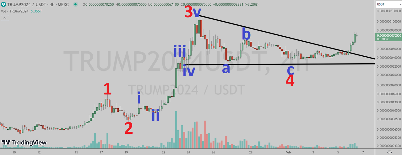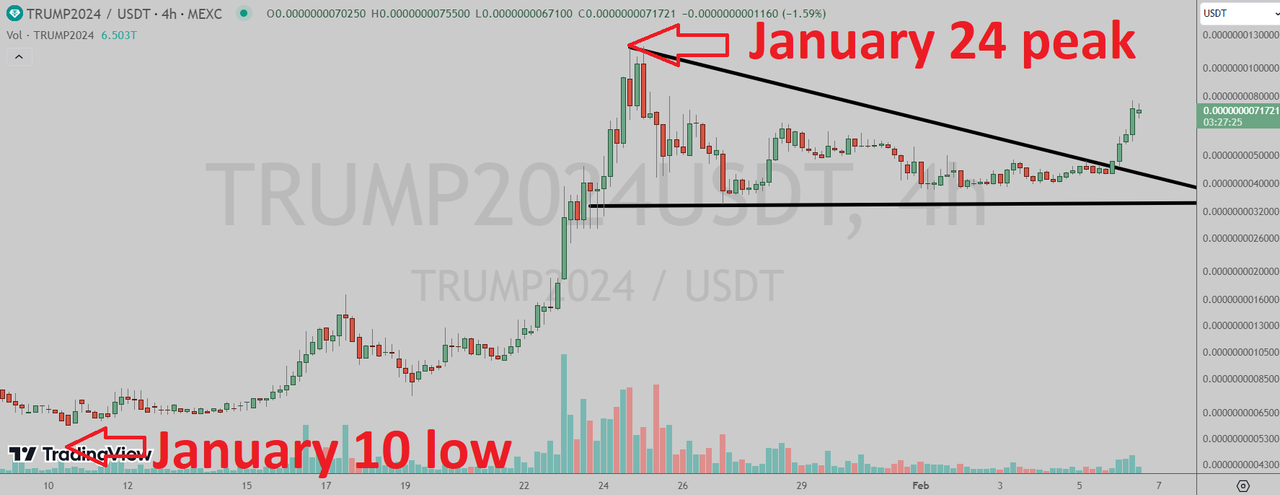 Donald Trump (MEXC: TRUMP2024USDT) four-hour chart by Tradingview.