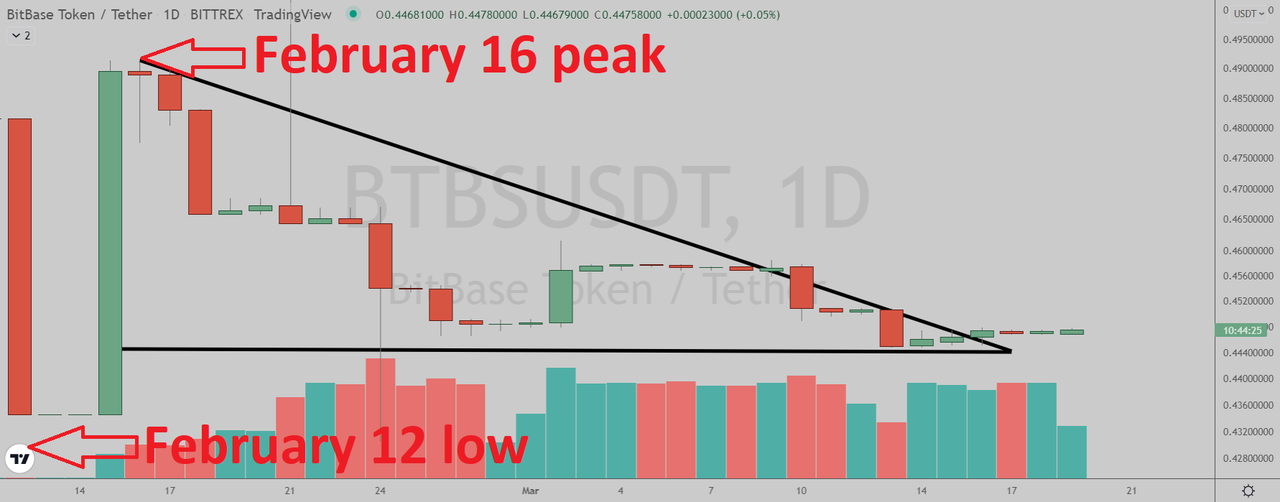 BitBase Token (Bittrex: BTBSUSDT) daily chart by Tradingview.